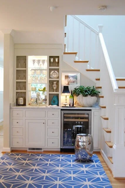 under the stairs,