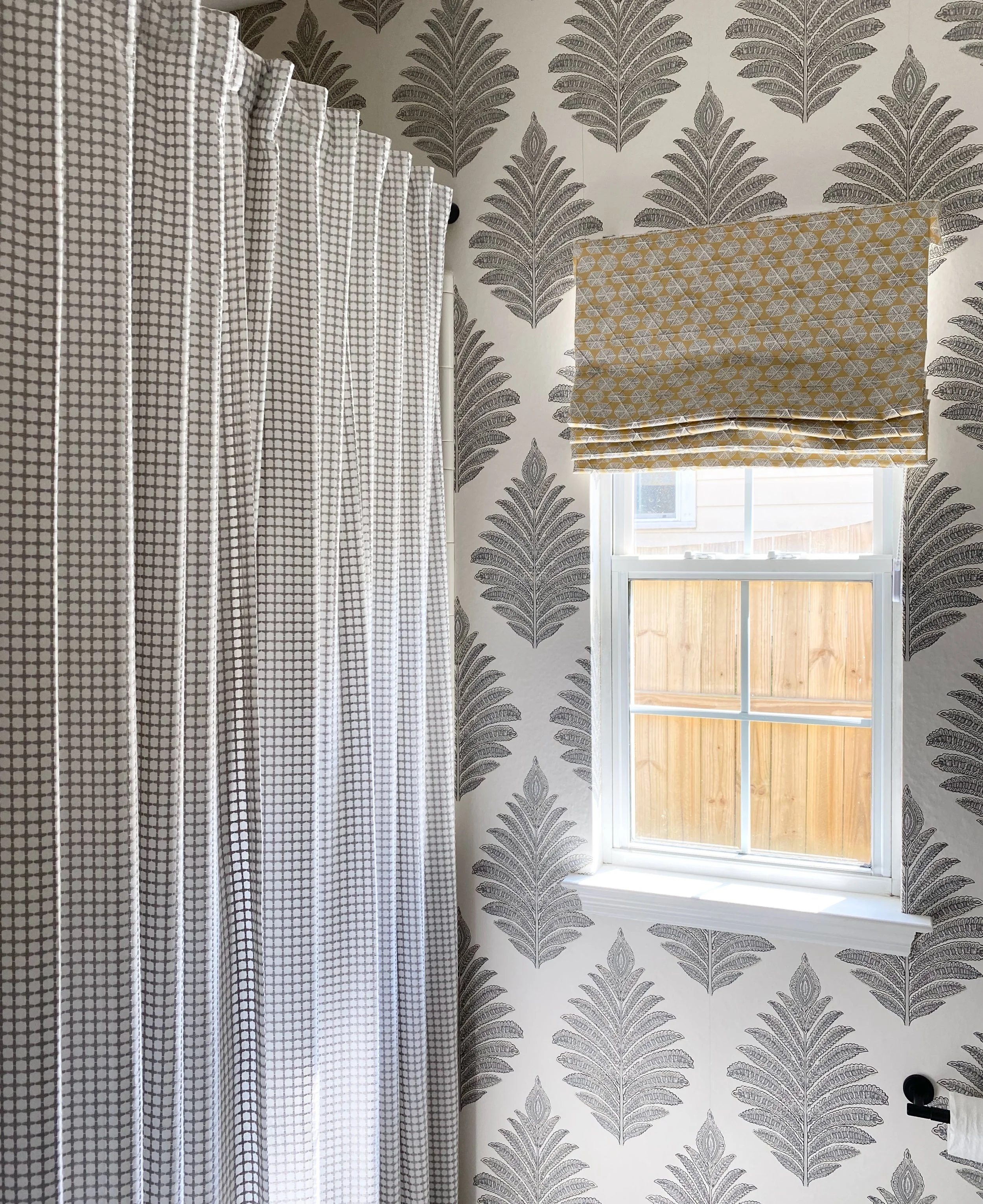 A new shower curtain and towels can do wonders for your bathroom. One of my favorite design “hacks” is to use two ready-made drapery panels to give you a custom look for less. Use one tension rod for the panels and a second one for the liner. They’ll be two different heights, but as long as you leave the panels closed - no one will know. I purchased mine from Target.