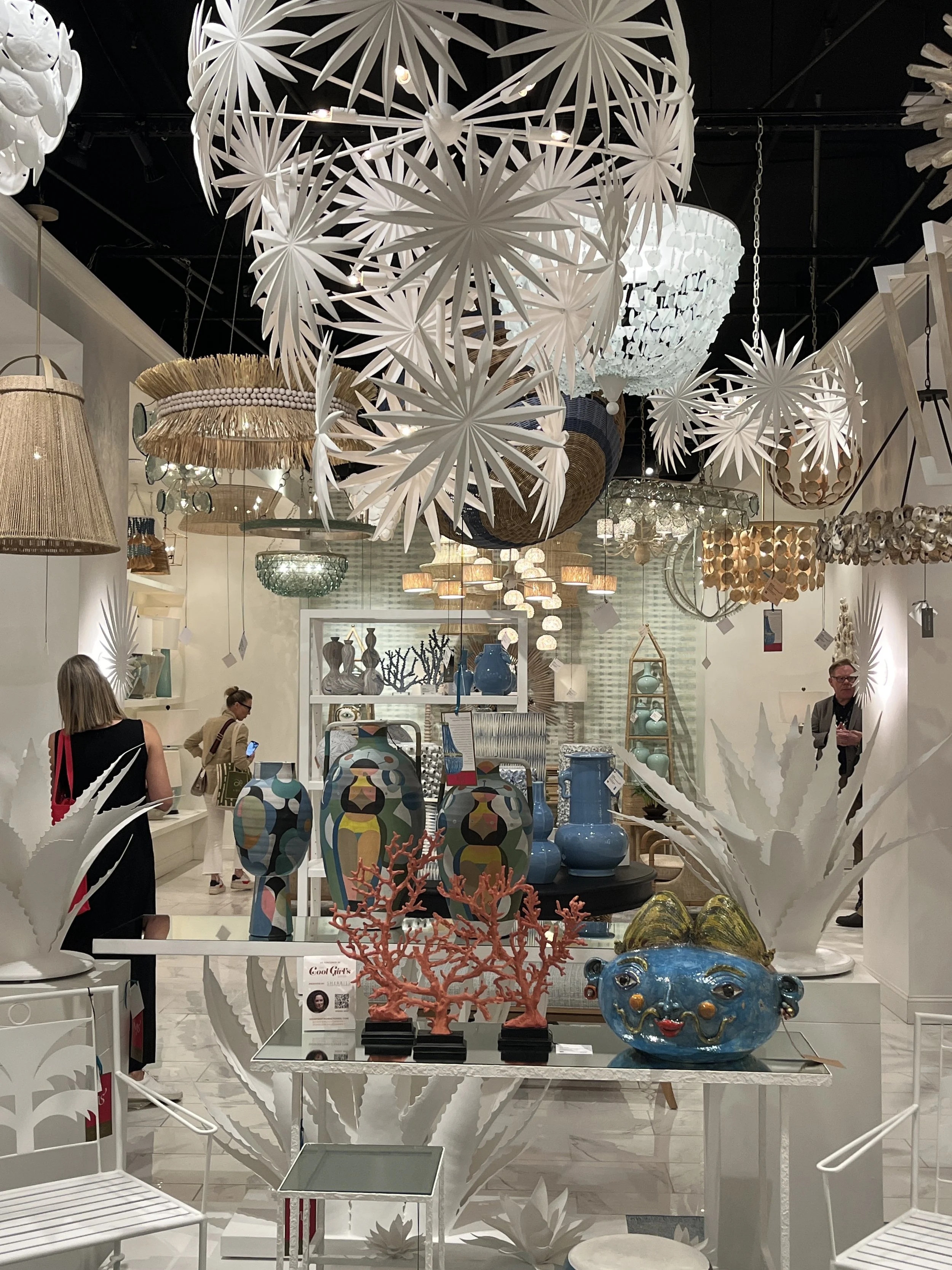 I’m not sure I would call this a trend, but it was definitely a look that I would love to use. Being from Florida, I tend to shy away from anything that is tropical looking, but these light fixtures were so fun. The white metal mixed with the natural texture and a little oyster shell thrown in really caught my eye.