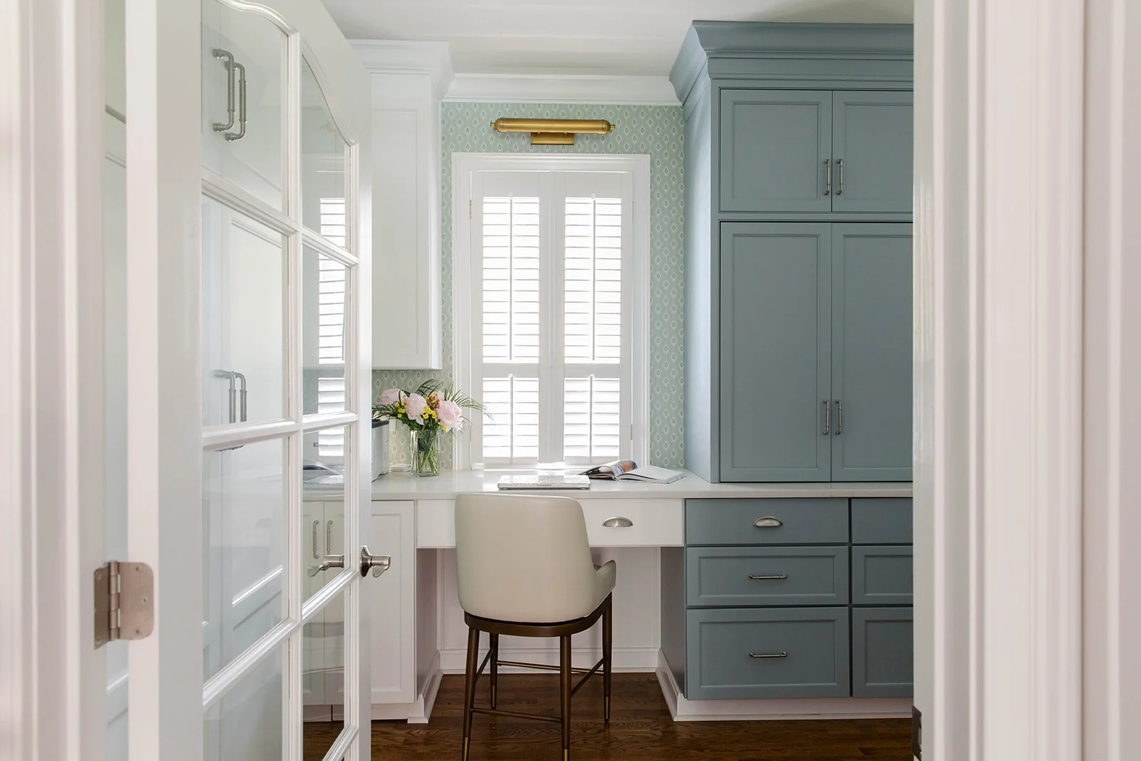We transformed the unused study into a stunning butler’s pantry, providing far more than just additional storage. This new space features a thoughtfully designed coffee bar, a functional desk area and even a hidden broom closet - blending beauty with practicality.