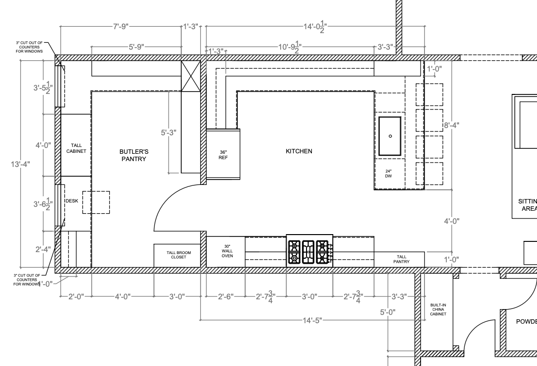 As with all our renovation projects, we provided our clients with a detailed rendering walk-through to help them fully envision their new space. For the Courtland Project, this step was especially exciting! The rendering allowed us to see exactly how the new floor plan would come to life, from the new butler’s pantry to the reimagined kitchen layout. Take a look, you’ll see how every detail came together to create their dream kitchen!