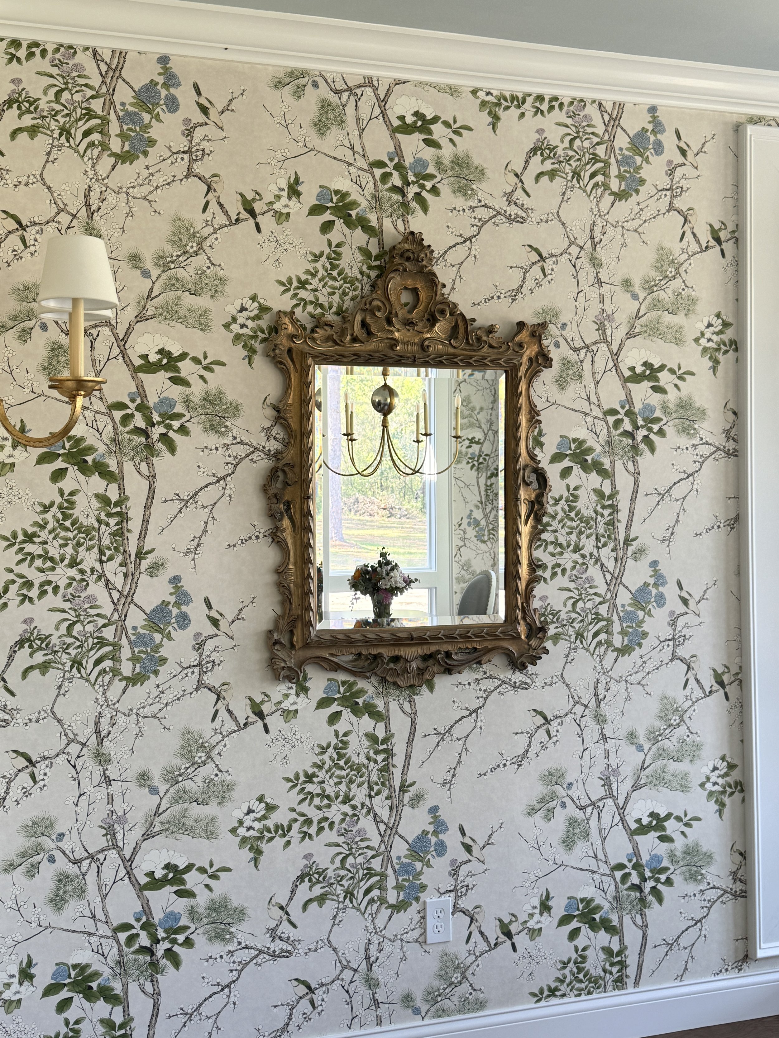 The fabric for my dining room windows has also been delivered to the workroom and the shades will be ready in April. I can’t wait! I did find this gold mirror on Facebook marketplace that I couldn’t pass up. It was the perfect size and the price couldn’t be beat. Now to find a console table to put under it. I may do something skirted or paint a console table in an unexpected color.
