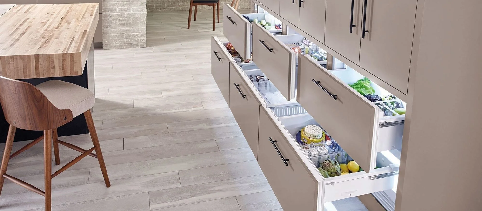 Refrigerator drawers, are a growing trend in kitchen design and one I’m really liking. They are perfect for storing drinks, snacks or frequently used ingredients right where you need them. The panel-ready design allows them to blend seamlessly into cabinetry. You can use them in conjunction with your main fridge if you need more space or put them in the island so they can provide easy access without disrupting the work flow of the kitchen. If you entertain a lot, consider one in your butler’s pantry for easy access to chilled beverages.