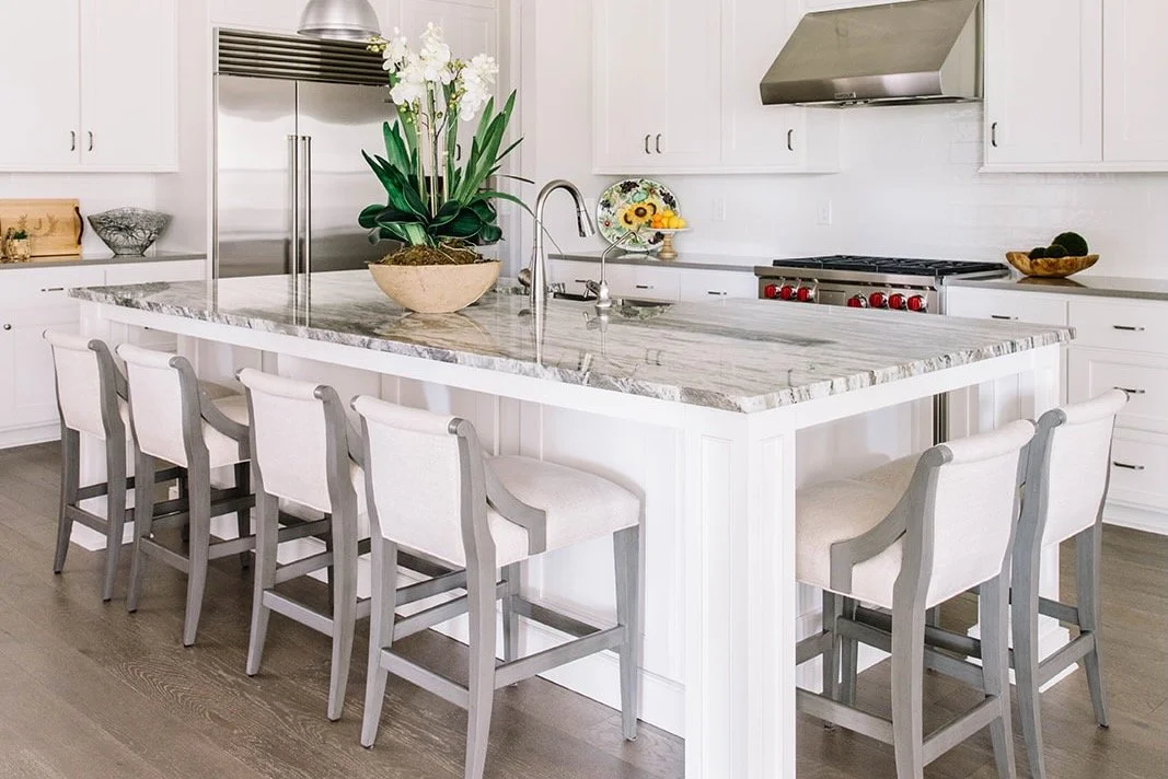 While most kitchen islands feature a traditional “bar” layout with stools lined up along one side, conversation islands take a different approach. By adding seating at the ends of the island, this design encourages a more natural flow of interaction, allowing family and friends to face each other while dining or prepping meals together. It’s a thoughtful way to make the kitchen feel even more inviting and connected. Conversation islands are not just practical; they transform the kitchen into a true gathering space.