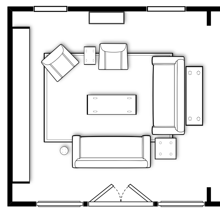My first step is to create a furniture plan. I layout the entire room (to include door openings, windows, fireplace, etc.) in a space planning software and begin placing the furniture. One of the biggest mistakes I see people make is on the SCALE of furniture. Always measure! Here is an example of a furniture plan I created for one of my clients and a photo of the finished room.