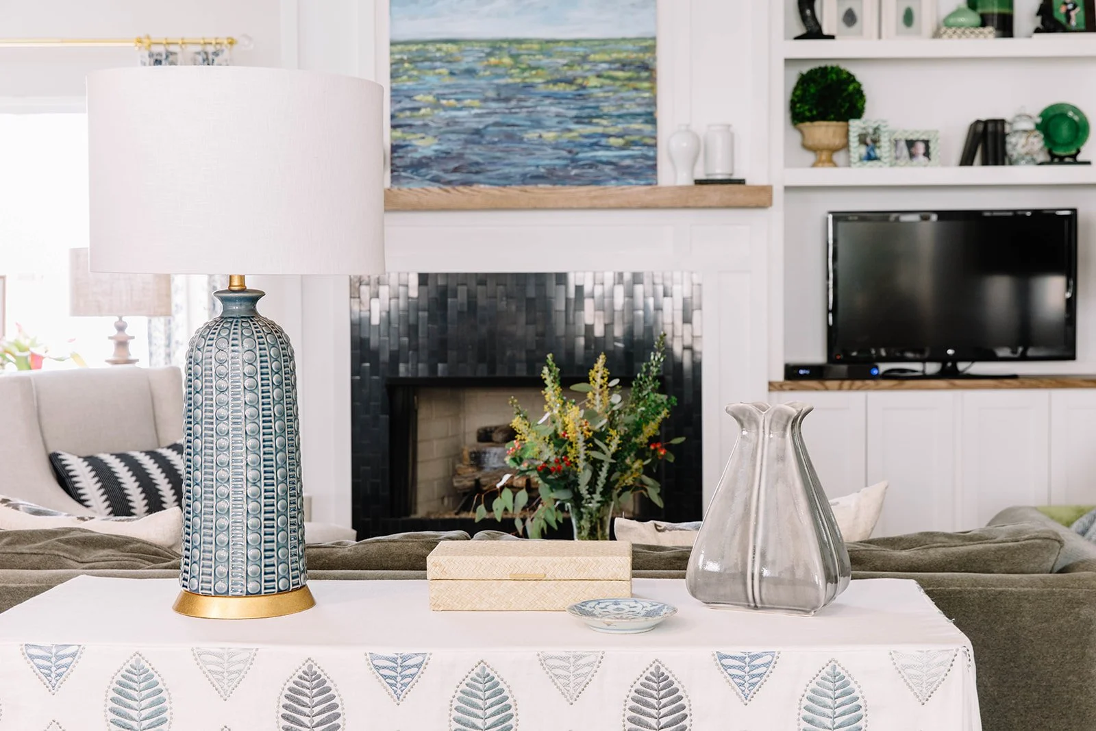 Good lighting is essential for aging eyes and mine have really aged these past few years. Maximize natural light by using draperies that you can fully open during the day and close for privacy at night. Layer your lighting by using overhead chandeliers and lots of table lamps. I always recommend putting your ceiling lights on dimmers so you can adjust the brightness. In my family room, I have three lamps that give me lots of options for light during the evening.