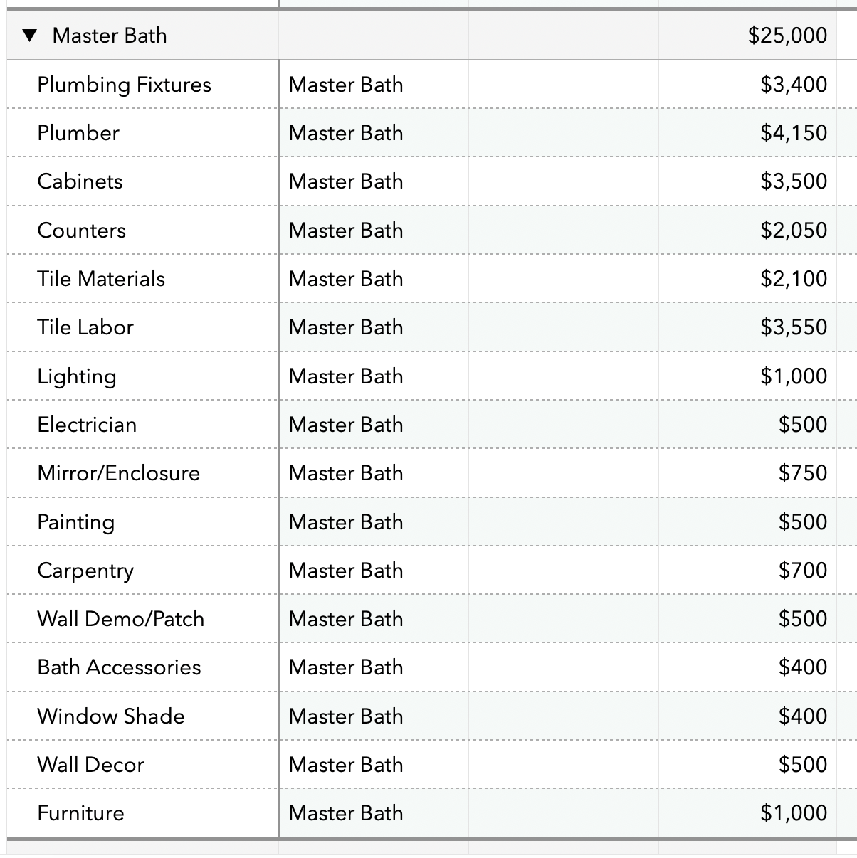 I can’t believe I’m saying this, but it’s time to start on the next remodeling project at my house. I promise this will be the last as my sanity and bank accounts are running VERY LOW! A few weeks ago I began step one of my 12-step design process, which is “Estimating the Costs” so I can establish a realistic budget. As you all know, I’ve always been transparent about the remodeling costs on my hall bath and kitchen projects and this one won’t be any different.