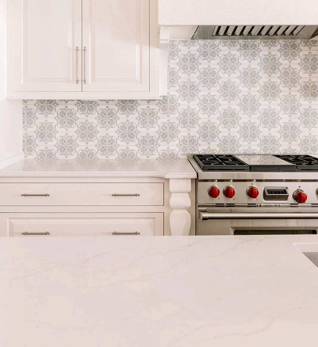 In the kitchen pictured below, we used a granite with a lot of movement for the island and a light gray quartz on the perimeter counters. By doing this, we let the island by the star of the kitchen!