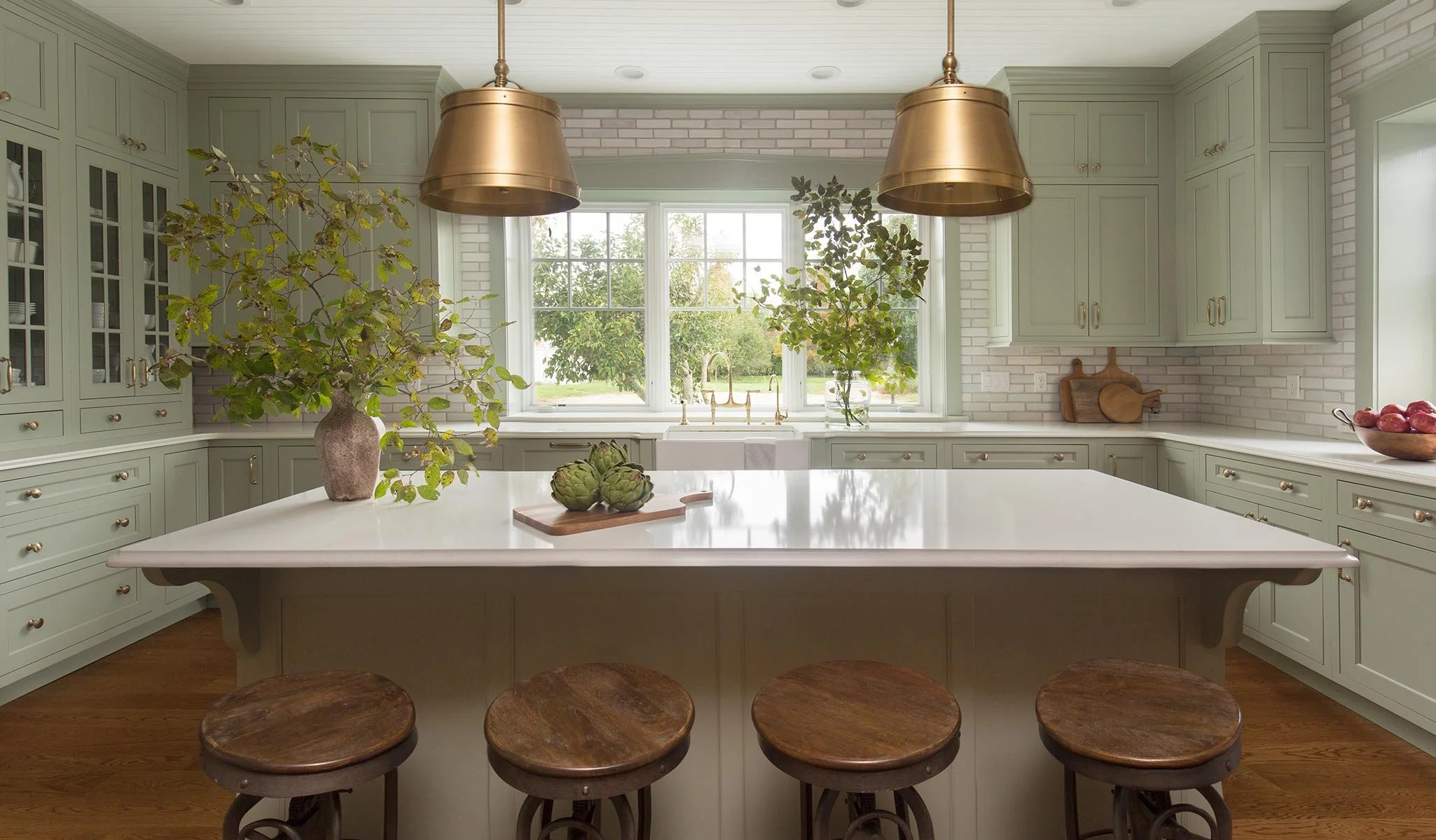 Also, capitalize on your vertical space. In this kitchen by Karr Brick Design, they included a china storage along one wall. The tall cabinet actually sits on the counter and fits seamlessly into the design. They also added a second row of cabinets, along the top. I like how they used solid doors so you can store anything you want here. The glass front ones are pretty, but remember you have to find pretty things to be put inside them.